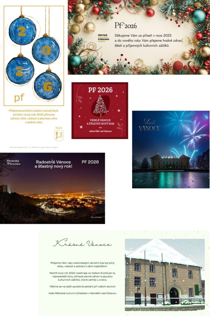 The concerts of the 31st edition of the festival take place in the beautiful halls of our beloved festival towns. Take a look at their photos in our traditional New Year’s e-gallery. If you don’t know what the frequently repeated letters PF mean, they are part of a Czech tradition – PF (standing for the French words “pour féliciter”) is used as a New Year card expressing good wishes for the coming year.
